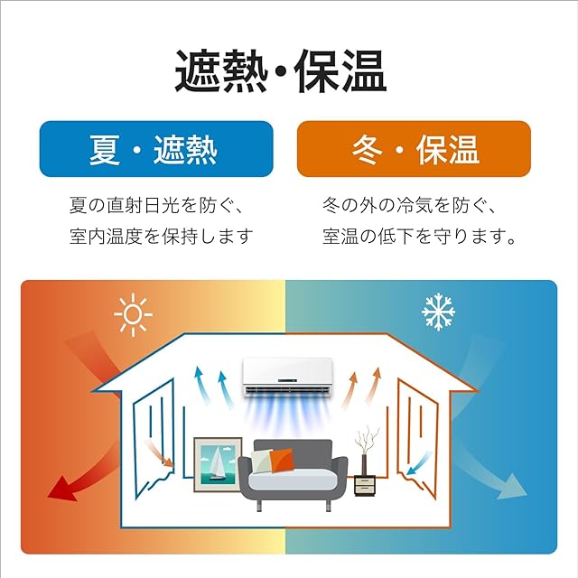 多機能性: 遮光カーテンは、優れた遮光効果だけでなく、遮熱、保温、そして防音機能も備えています。夏は外部の熱を遮断し、冬は冷気の侵入を防ぎ、室内を快適な温度に保ちます。さらに、外部の騒音や街灯の光も効果的に遮断します。