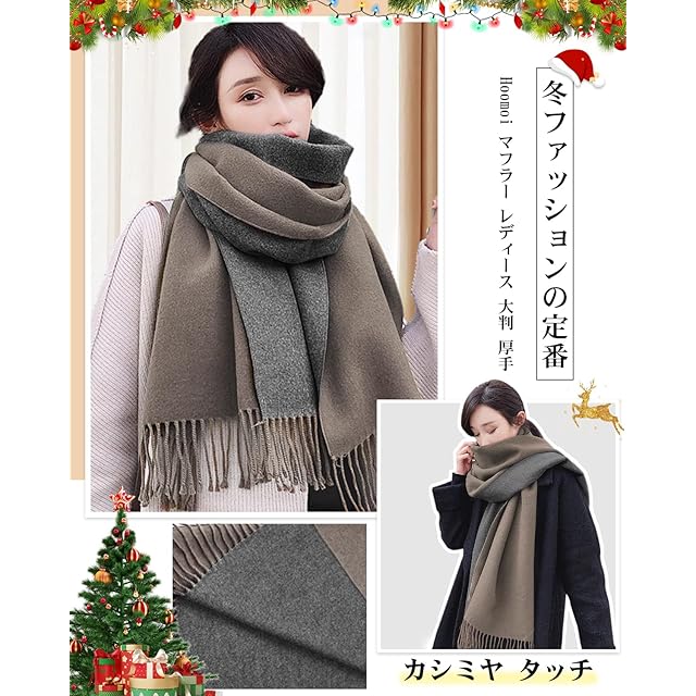 [Hoomoi] マフラー レディース 人気 カシミヤタッチ ストール 大判 マフラー ファッション 冬 厚手 両面 使える ギフトボックス付き 無地 学生 誕生日プレゼント フリンジ生地 襟巻き 秋冬定番 クリスマスプレゼント