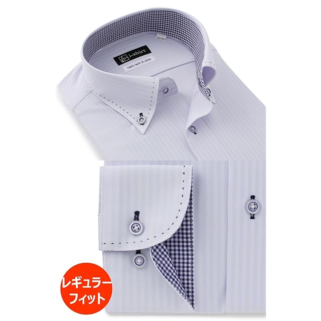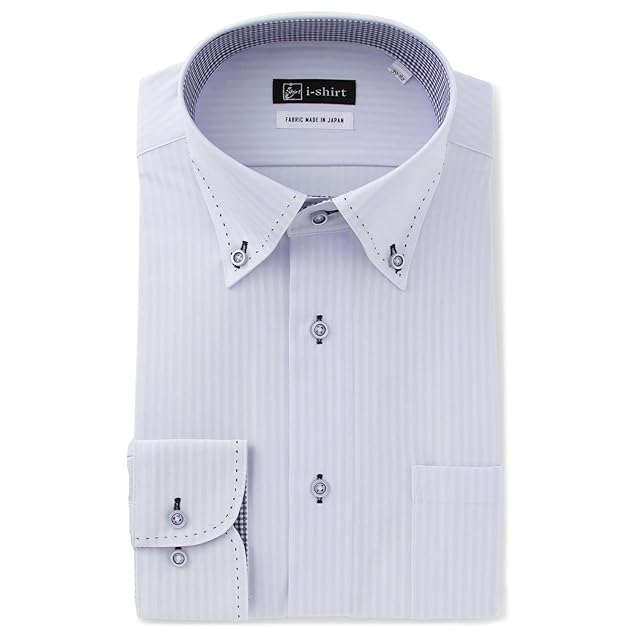 [アイシャツ] i-Shirt 完全ノーアイロン ストレッチ 超速乾 アイシャツ ワイシャツ メンズ ノンアイロン サックス ストライプ ハンドステッチ ボタンダウン 長袖 レギュラーフィット M15121003581 首回り45cm×裄丈86cm