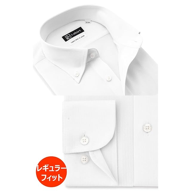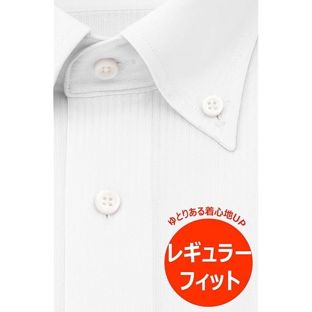 [アイシャツ] i-Shirt 完全ノーアイロン ストレッチ 超速乾 レギュラーフィット 長袖 アイシャツ ワイシャツ メンズ ノンアイロン ホワイト ドビーストライプ ボタンダウン M15121001101 L82(首回り41cm×裄丈82cm)