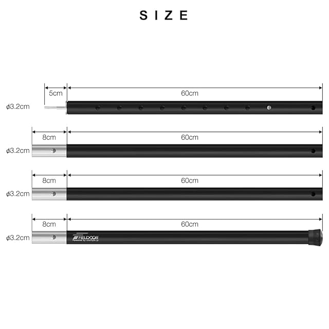 color:【C-06】アルミテントポール(8段階調整 / 4本連結) 2セット / ブラック: