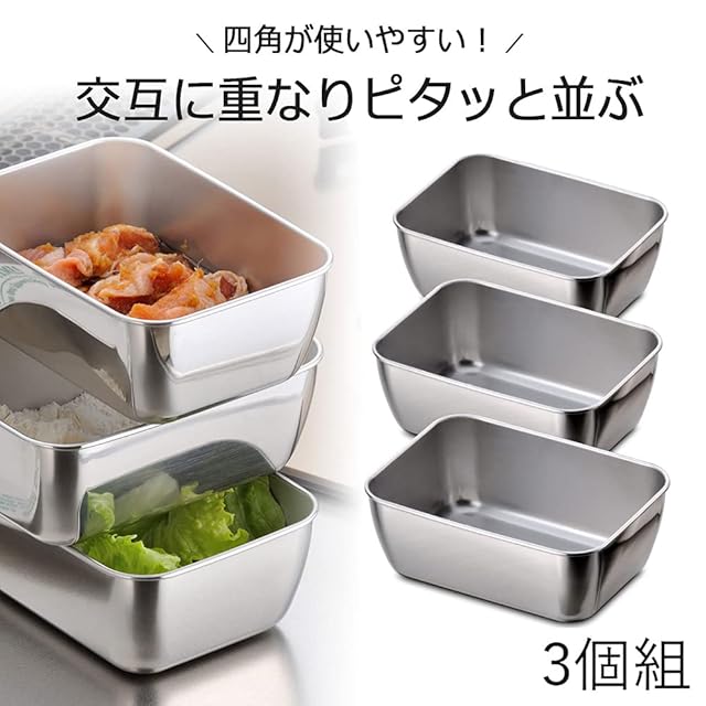 下村企販 積み重ねて省スペースに使える 角型 バット 3個組 【日本製】 食洗機対応 すっきり収まる角型 食材の小分け 下ごしらえ 料理 深型 960ml ステンレス 燕三条 34051