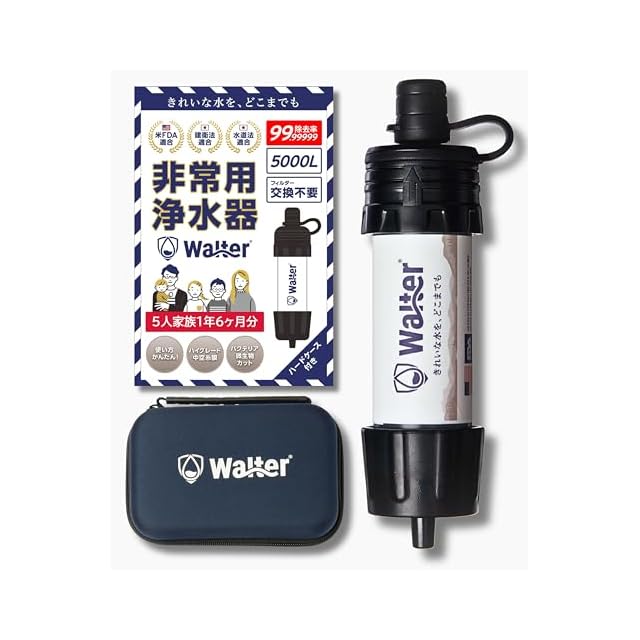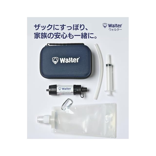 【ケース付き】Walter(ウォルター)携帯浄水器 5人家族1年6ヶ月分 災害 アウトドアー用浄水器 登山用濾過器 フィルター交換不要 5000L 軽量 ハードケース付き (01.ネイビー(ケース色))