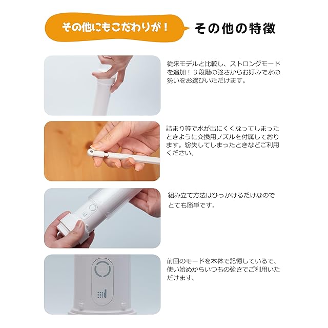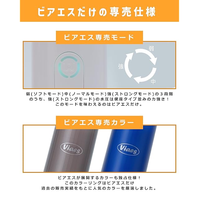 Viaes(ビアエス)【正規品】充電式 携帯おしり洗浄器【水圧強い ストロングモード搭載】(USBケーブル、予備ノズル、専用ポーチ) 電源不要 簡易 シャワー ウォッシュ トイレ ハンディ ポータブル (a.ホワイト/ジョイントなし)