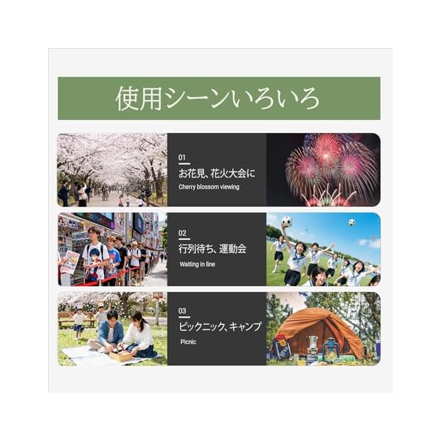 【様々な場所で大活躍】アウトドアチェアとして、行列、キャンプ、お釣り、ハイキング、トレッキング、登山、 花火大会 、運動会、お花見など、いつでもどこでも気軽に使えます。防災対策として、家・車内に常備しておけることもオススメます。