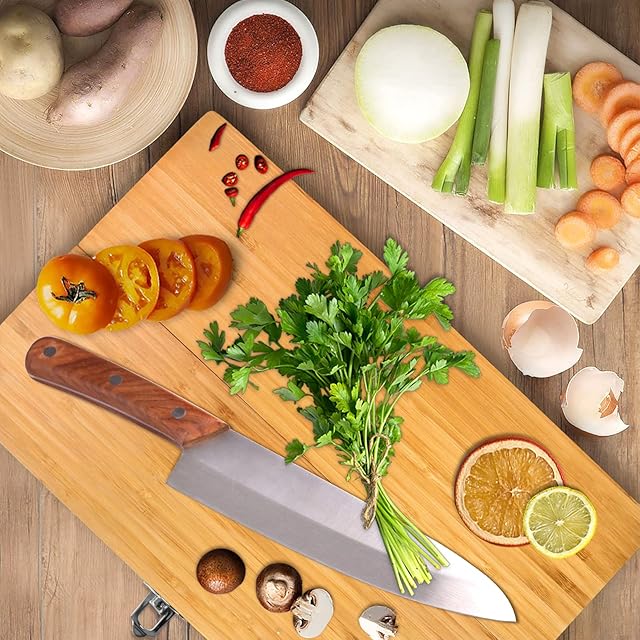 ❸材質:天然竹。適切に管理されたFSC認証を受けている竹素材のみを採用(FSC100%)。優れた抗菌・防臭効果あり、木製のまな板よりばい菌が繁殖しません。また、水切れが良く、乾きが早いので黒カビも発生しにくく、肉、魚類をカットしても色・臭いが残りづらいです。いつでも清潔!きれいにお使い頂けます。