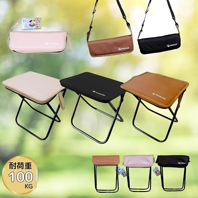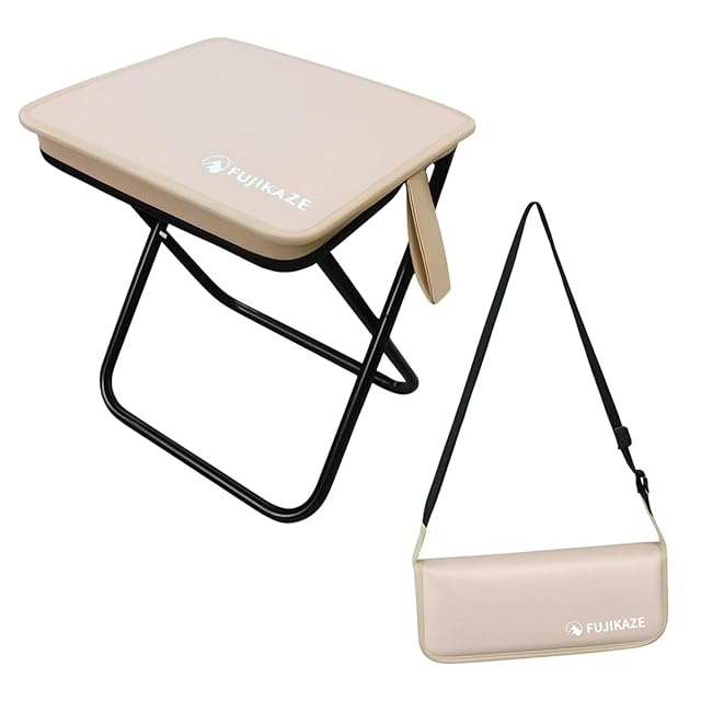 FUJIKAZE 折りたたみチェア コンパクト椅子 アウトドアチェア 軽量 ショルダーベルト付き 持ち運び便利 収納袋一体型 花火 花見 万博 ハイキング 釣り 登山 夏フェス 行列並び アルミ脚 オックスフォード 壊れ難い 3色展開 【この夏一番流行っている折りたたみ椅子】 (アイボリー)