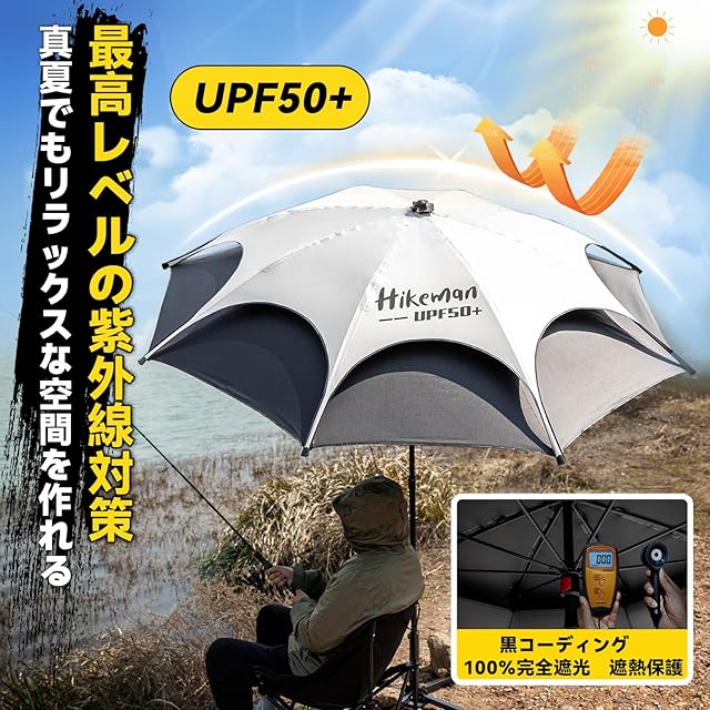 大型範囲でUVカット:直径200CMもある大型パラソルで、そして裏面には遮光率100%のブラックコーティングが施されており、使用時は超広い日陰範囲を提供してくれます。UPF50+のUVカットで猛暑でも涼しくて楽しいお釣りができます。