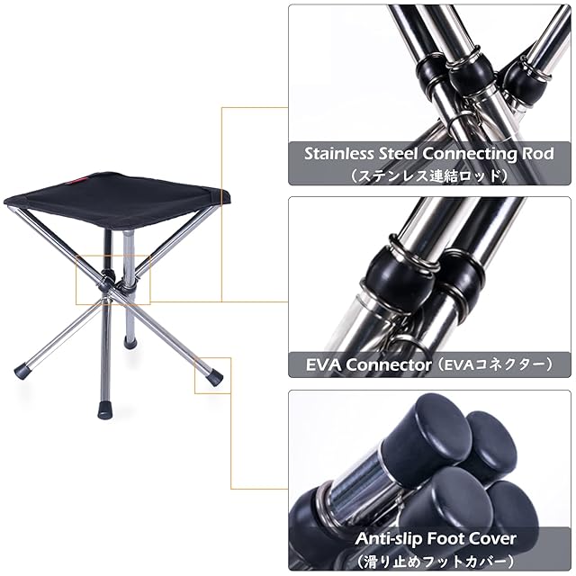 ✅【組立・携帯便利】4脚伸縮イスの設置は脚を伸ばして広げるだけで簡単です。コンパクトで持ち運びにスペースをとらず、折りたたみ傘のように使えて便利です。重さは530gで超軽量です。収納袋も付いています。