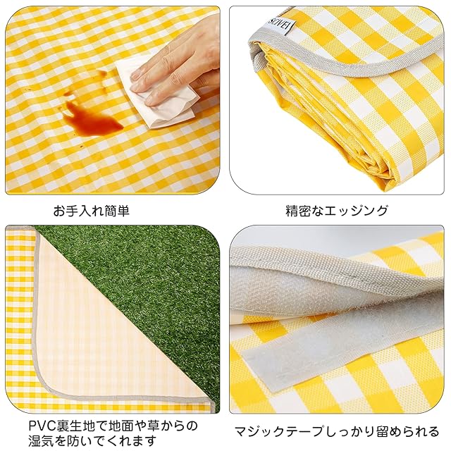 SCIVEI レジャーシート ピクニックマット 大判 150x200cm 3~6人用 折りたたみ 防水 防湿 コンパクト収納 携帯便利 軽量 遠足 運動会 お花見 キャンプ アウトドア チェック柄 (イエローチェック)[日本語説明書付き]