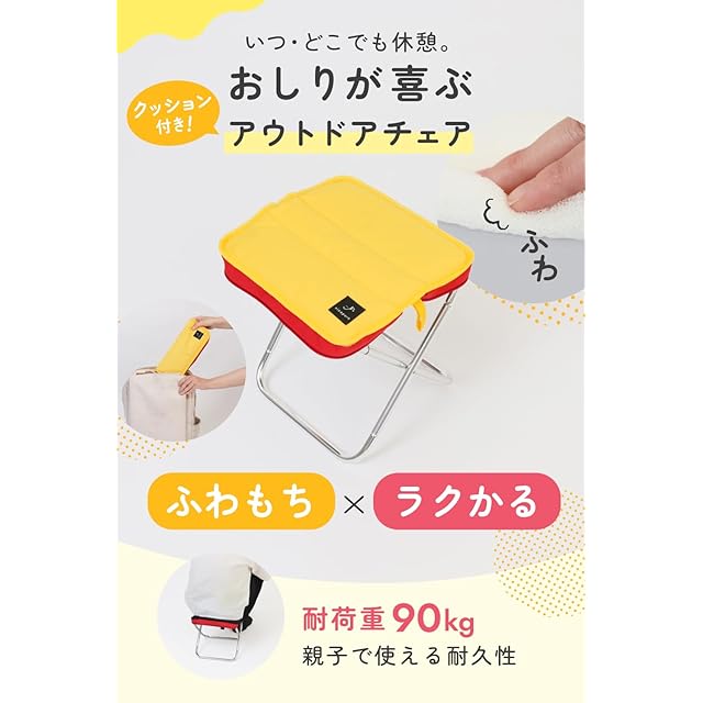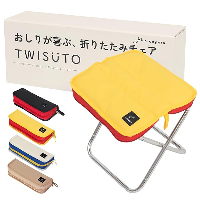 【クッション付き】折りたたみ椅子 コンパクト 軽量 持ち運び パレード テーマパーク 低反発 450g ブラック nicopura TWISUTO Pro イエロー