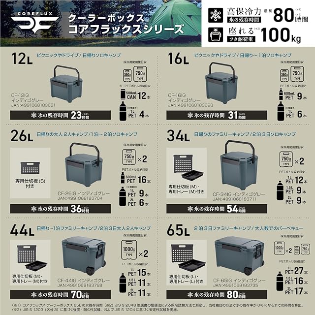 JEJアステージ 座れる 高保冷力 クーラーボックス COREFLUX (コアフラックス) インディゴグレー 12L 日本製[幅425×奥行333×高さ275mm]レジャー スポーツ 部活 アウトドア キャンプ ピクニック 鍵穴付き コンパクト 軽量 釣り 蓋が外せてお手入れ簡単