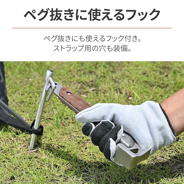 ペグ抜きに使えるフック付きで、設営から撤収まで活躍