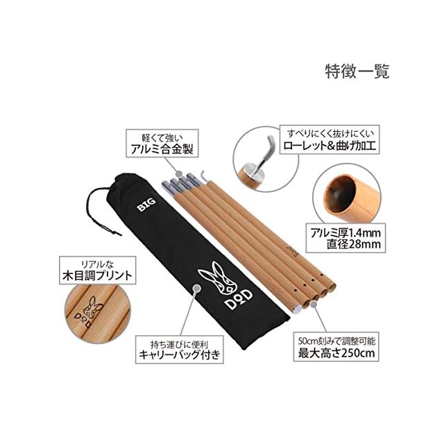 DOD(ディーオーディー) ビッグタープポール 250cm アルミ 収納袋 太さ28mm XP5-507-WD