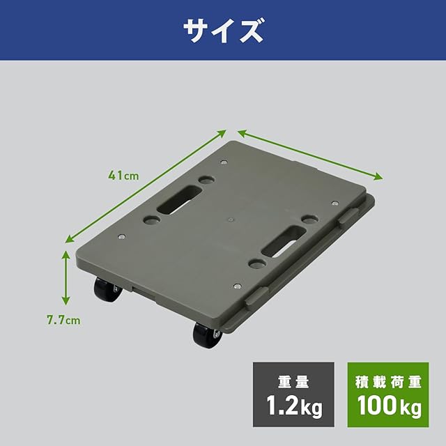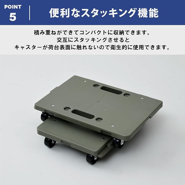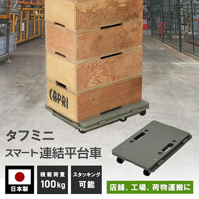 山善(YAMAZEN) ミニ平台車 27.5×41cm 耐荷重100kg 縦横連結可能 スタッキング機能 キャリーカート ドーリー 軽量 連結可能 積み重ね 台車 平台車 コンパクト YRM-N50(OD) オリーブ