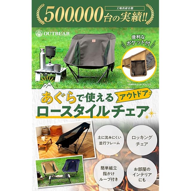 OUTBEAR【あぐらで使える】アウトドアチェア ローチェア グランドチェア あぐらチェア キャンプ [国内検査機関で耐荷重120kg試験済み] (オリーブ)