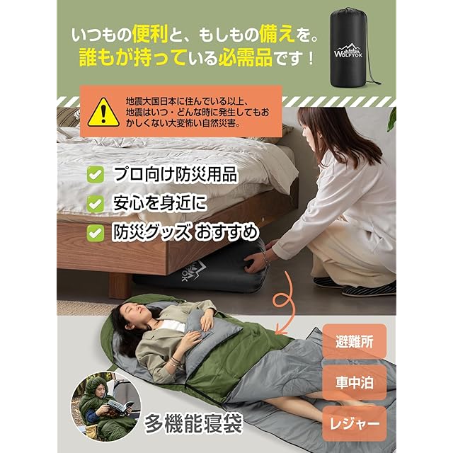 寝袋 冬用【手足伸ばし可能・230T防水】4in1多機能 1.4Kg 1.1Kg 1.8Kg 2.2Kg 寝袋 オールシーズン 夏用シュラフ 封筒型 コンパクト 軽量 中綿 快適温度-5℃-20℃ 保温 wolfyok outdoors 丸洗い可能 収納パック付き キャンプ アウトドア コンパクト 登山 車中泊 防災用 避難用 防寒【国内ブランド】