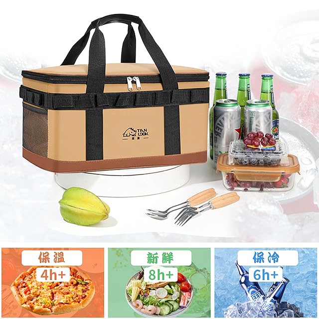 【3層構造·優れた保温・保冷力】ソフトクーラーの外層は600Dオックスフォード生地でできており、防水性、耐摩耗性があり、色あせしにくいです。2層目は保温性、保冷性、断熱性に優れた増粘パールコットンを使用しています。3番目の層は高品質のPEVA素材で作られており、内部のアルミ箔インターフェースはホットプレスプロセスを採用して良好なシールを確保します。保冷時間は最長6~12時間、保温時間は最長4~6時間です。密閉性に優れ、水漏れの心配がありません。