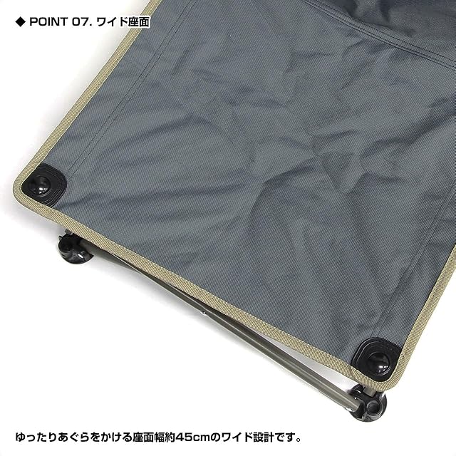 ゆったり座れるワイド座面で安定感抜群です。背面には、便利な収納ポケット付き。防波堤・サーフ・船・筏・カセ等のフィールドからアウトドアはもちろん、運動会などの学校行事やお花見などのレジャーにも最適です。
