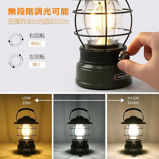 Litake LED ランタン 充電式 レトロ ledランタン 無段階調光 3色切り替え 5200mAh 600lm 120時間点灯 キャンプライト 防災 キャンプ アウトドア オリーブグリーン
