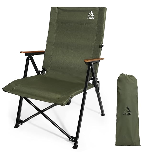 ARURU キャンプチェア 折りたたみ アウトドア 600D生地 軽量 コンパクト収納 耐荷重100kg【オリーブ緑】