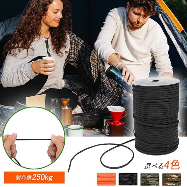 100m パラコード 4mm 9芯 ボビン巻型 テント ロープ ガイライン 耐荷重250kg DIY編む用 キャンプ サバイバル アウトドア用