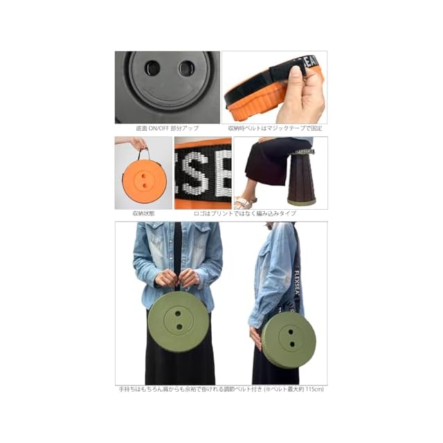 ✅【持ち運びも便利】→長さ調節可能なストラップ付きで、手持ちも、肩掛けも、2Wayご使用いただけ便利です。たたむと高さ7cm、直径25cmの円盤状になるので、収納もコンパクトなのでリュックにも収納可能です。