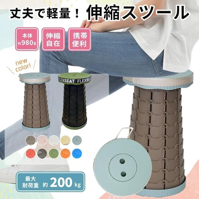 ✅【使い方はとっても簡単】→上下の指穴に指入れ、底面のON⇔OFFロックをON側に回してロックを解除します。そのまま両端を引きのばしお好きな高さで止め、ひねりを加えてロックすることでスツールが完成します。収納時は手順を逆に行ってください。
