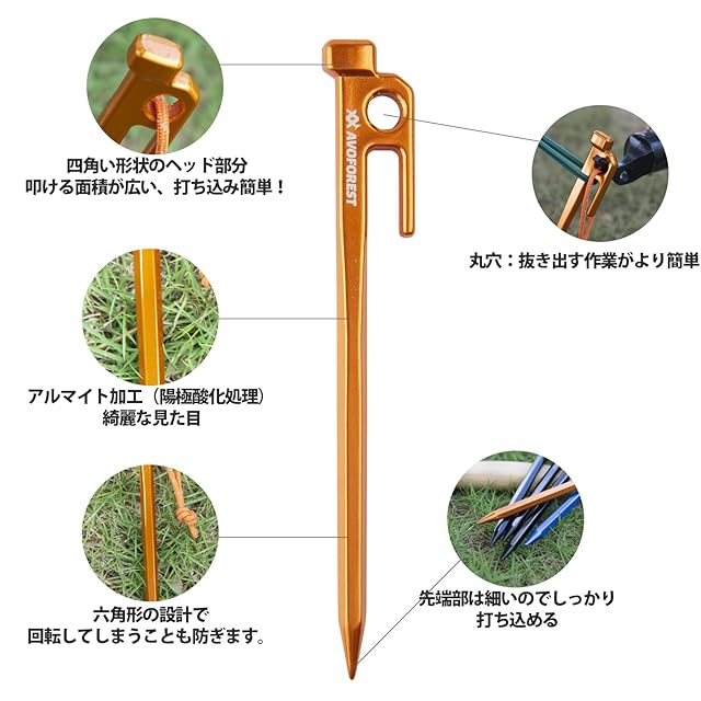 【業界初】AVOFOREST 鍛造ペグ アルミ製 ペグ キャンプペグ 20cm/30cm 4本/8本セット 一体成型 溶接なし テントペグ 超軽量 高強度 錆びにくい テント用 タープ用 アウトドア/キャンプ 用品 岩場 砂浜 砂利 硬い土 芝生 (オレンジ 25cm8本)