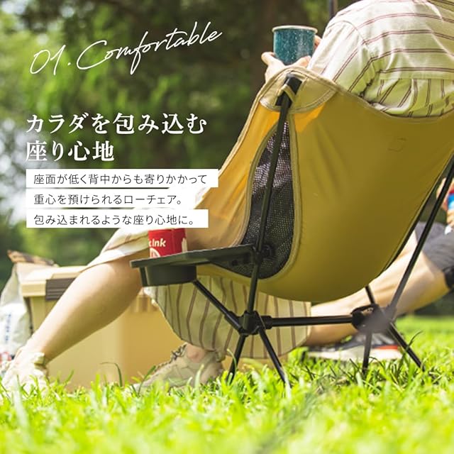 アイリスオーヤマ アウトドアチェア ローチェア カーキ サイドテーブル付き ドリンクホルダー キャンプ用品 チェア コンパクト 収納 収縮タイプ 簡単組立 アウトドア ギフト プレゼント