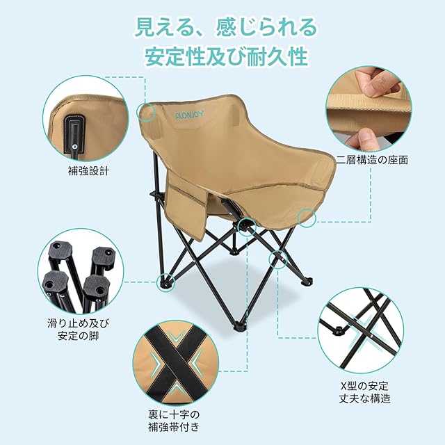 ALONJOY 軽量 折りたたみ椅子 1.64kg 組立不要 アウトドアチェア ベランダ お庭 バルコニー キャンプ椅子 釣りイス 展開収納簡単 収束式 ポケット付き 持ち運び 携帯便利 (カーキ)