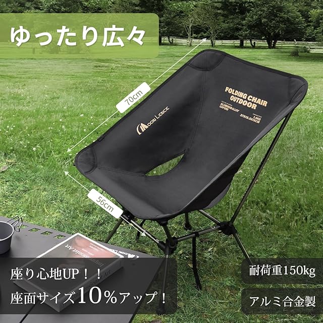 MOON LENCE アウトドア チェア 「ワイド 2WAY高さ調整可能 キャンプ 椅子 アウトドアチェア キャンプチェア 軽量 折りたたみ コンパクト ハイキング 釣り 登山 耐荷重150kg カーキ