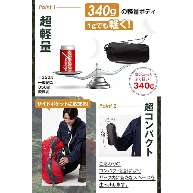 【超軽量の340グラム】「ぜんぶ背負っていくから荷物は1gでも軽い方がいい!」山に登る人にとって意外と大切なこと。また、⾬天対策に撥⽔加⼯した収納袋を採⽤。大切なインナーシュラフを突然の⾬から守ります。