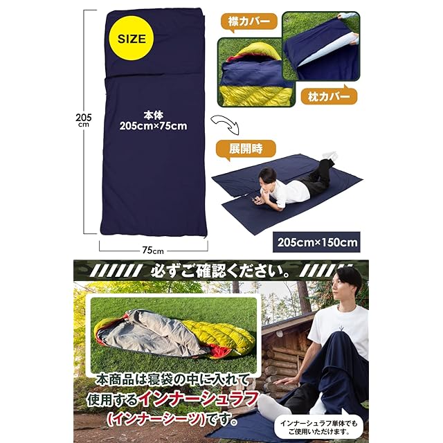【大活躍】 登⼭、キャンプ、⼭⼩屋泊、⾞中泊、テント泊、グランピング等のアウトドア全般に。ホテル泊における簡易シーツ代わりや、夜勤、急な外泊、旅行時のブランケット代わりとして。さらに、災害等における⾮常⽤寝具としても⼤活躍します。丸洗いOKだから、持っていく時はいつも清潔を保てます。