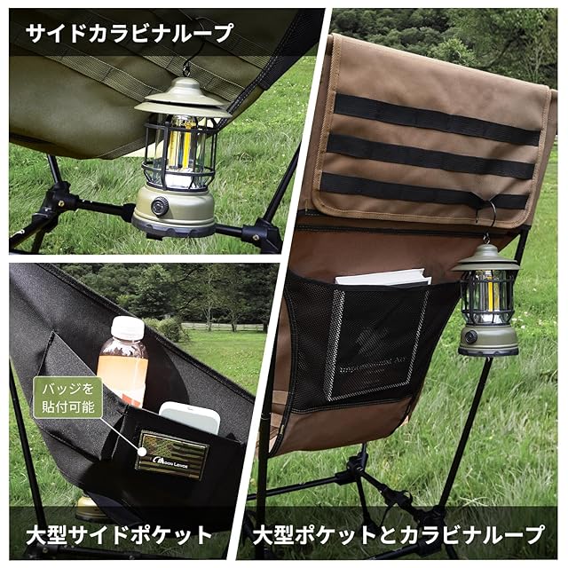 MOON LENCE アウトドア チェア ハイバック 超ワイド67cm 四段階高さ調節 大型足キャップ アルミ キャンプ 椅子 グランドチェア 折りたたみ 軽量 コンパクト 耐荷重180kg 専用収納バッグ付き カーキ