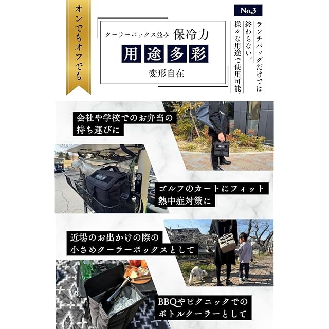 【保冷力×変形自在、だから多目的】強力な保冷力と変形機構があることにより、普段のランチバッグからキャンプのクーラーバッグ、ゴルフのカートで使用するクーラーボックス、バーベキューのボトルクーラーまで様々なシチュエーションで活躍します。