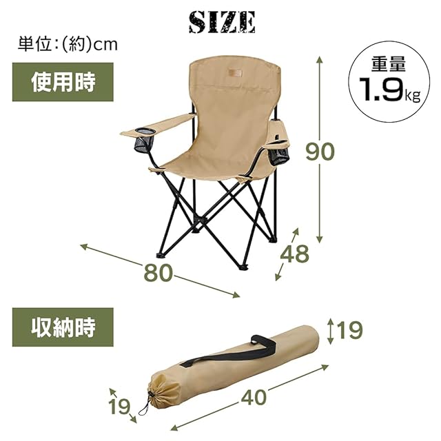 製品サイズ(cm):使用時…幅約80×奥行約48×高さ約90、収納時…幅約19×奥行約19×高さ約87