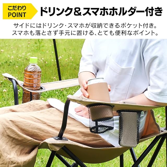 アイリスオーヤマ アウトドア チェア 折畳み椅子 キャンプ用品 キャンプ チェア カーキ コンパクト 収納 収縮タイプ 簡単組立 アウトドア