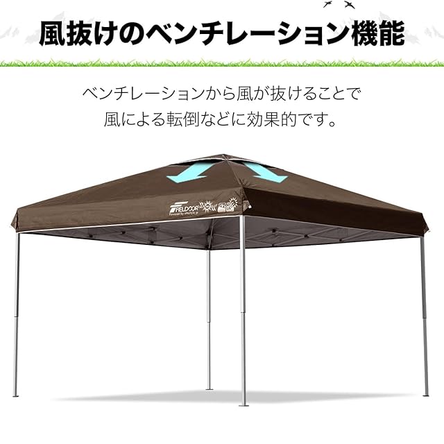 ✅【風抜けのベンチレーションを装備!】 トップカバー上部には、風抜けのベンチレーションを装備。テント内側にたまる空気が通り抜け、風によるタープテントが倒れる事故にも効果的。アウトドアに留まらず、スポーツ大会やイベント等にもピッタリなアイテムです。