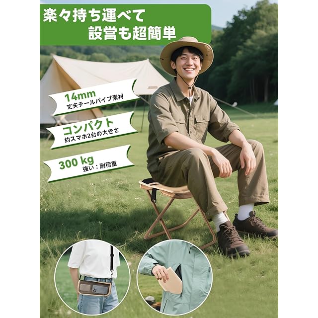 【折りたたみ椅子 軽量・強度は桁外れ! 耐久性5倍の14mm高炭素鋼フレームで300kgまで耐える】その圧倒的な耐久性は他を寄せ付けません。市販品に多い薄くてもろい0.8mmのアルミ素材の椅子では、1時間ほど座っただけで脚が折れたり、体重をかける角度によってはすぐに歪んでしまうような心配がある中、当製品は太さ14mmの高炭素鋼を採用することで、「曲がる」「折れる」といった不安を一切解消し、驚異的に耐久性を5倍以上向上させることに成功しました。例えば体重150斤の成人二人が同時に立っても毫发無傷であるほどの驚異の耐荷重300kgを実現し、凹凸のある地面でもビクともしない驚愕の安定感で、あらゆる体格の方に安心をご提供します。もういかなる場面でも壊れる心配はなく、一生モノの鉄板アイテムとなるでしょう。