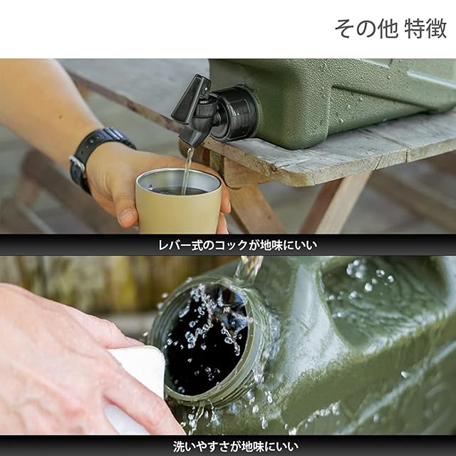 材質:タンク:ポリエチレン、フタ:ポリプロピレン、蛇口:ポリプロピレン、パッキン:シリコン