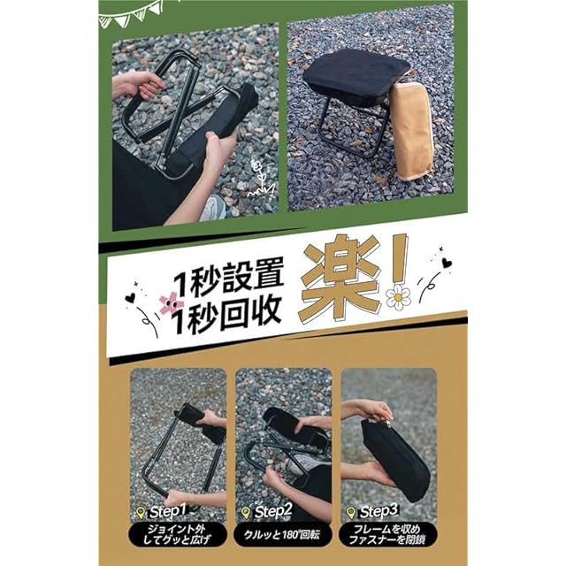 【多様なシーンに対応】コンパクトで携帯可能なキャンプチェアです。広げて使用できます。キャンプ、ピクニック、バーベキュー、釣り、散歩、新幹線、待ち時間、旅行に最適な小型折りたたみ椅子です。