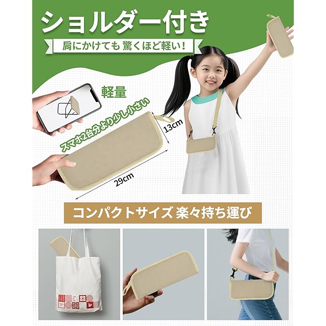 【2025NEW ショルダー付き折りたたみ椅子】ショルダー付き折りたたみ椅子は、超コンパクト設計により、折りたたみ椅子をショルダーバッグのように肩にかけてお持ちいただけます。これにより、いつでも、どこでも手軽に休憩が可能です。収納時のサイズはわずか約29×11cmとコンパクトで、大きさは小型の日傘と同程度でございます。肩にかけても、カバンに入れても全く負担にならず、長時間の見学やイベント時における休憩用として、このショルダー付き折りたたみ椅子はまさに最適な選択肢でおすすめです。