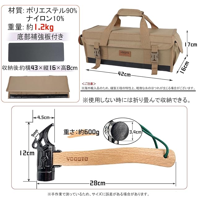 【商品仕様】第二世代収納ボック使用サイズ:約42×16×17cm 重量:約1.19kg ペグハンマー重量:約600g