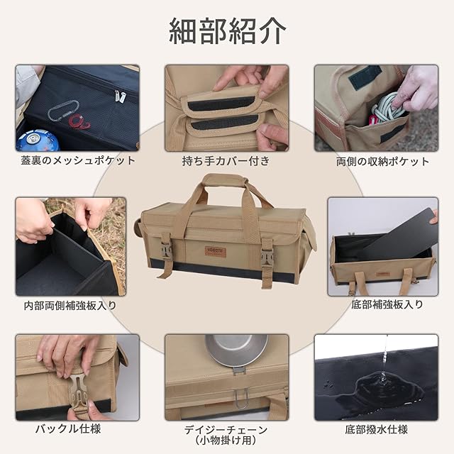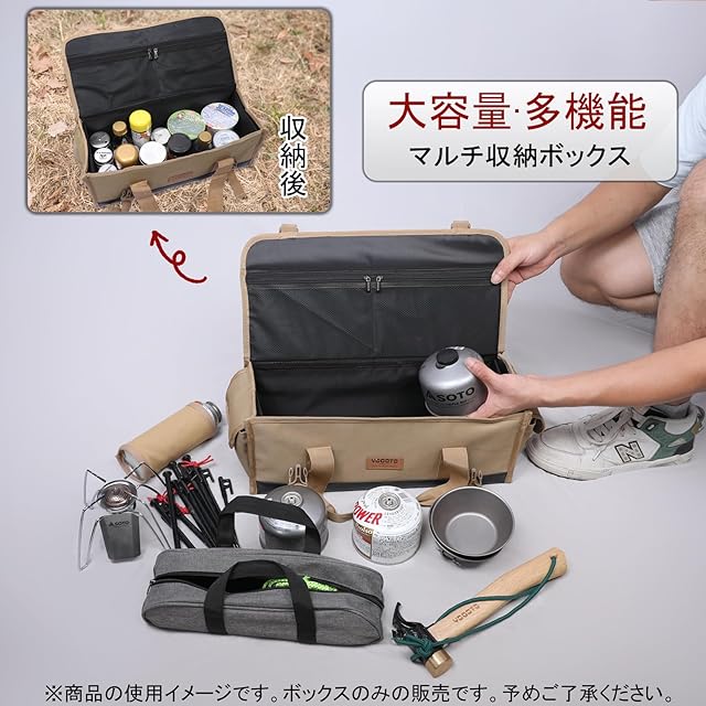 【多機能性】キャンプ、ハイキング、アウトドア活動に適応なこのキャンプソフト収納ボックスは、ギアの整理だけでなく、日常使用にも適している。
