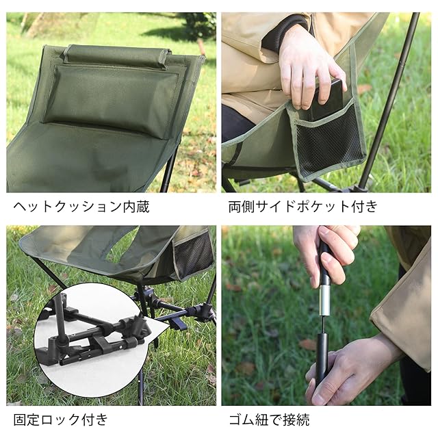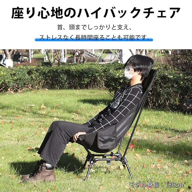 MOON LENCE アウトドア チェア ハイバック 四段階高さ調節&角度調整可 キャンプ 椅子 あぐらチェア グランドチェア 折りたたみ 軽量 コンパクト 枕付き 耐荷重180kg キャラメル