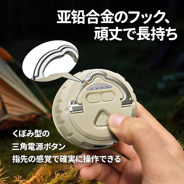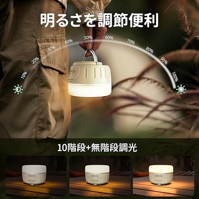 【無段階調光&光色記憶機能】LEDライト上部の「+/-」ボタンで明るさをスムーズに調整可能。前回の設定を記憶する機能で、面倒な再設定は不要です。アウトドアライトとしてもナイトライトとしても、理想の光環境を簡単に作れます。