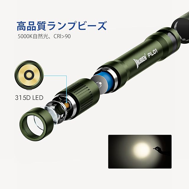 650高ルーメン懐中電灯:このコンパクトなペン型懐中電灯は4つのモードを提供します。(ハイからムーン:650LM/150LM/50LM/1LM)、高性能LEDビーズを搭載し、瞬時に近距離の検索に強力な照明を提供する超明るい650ルーメンを解放します。