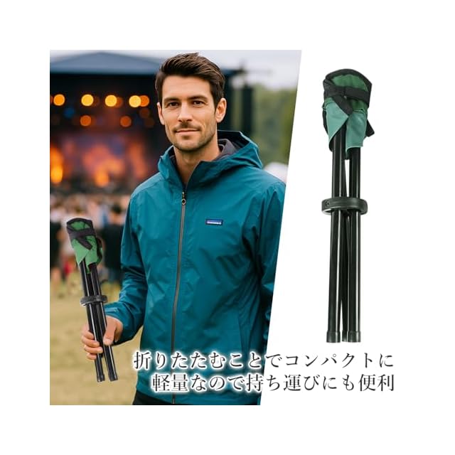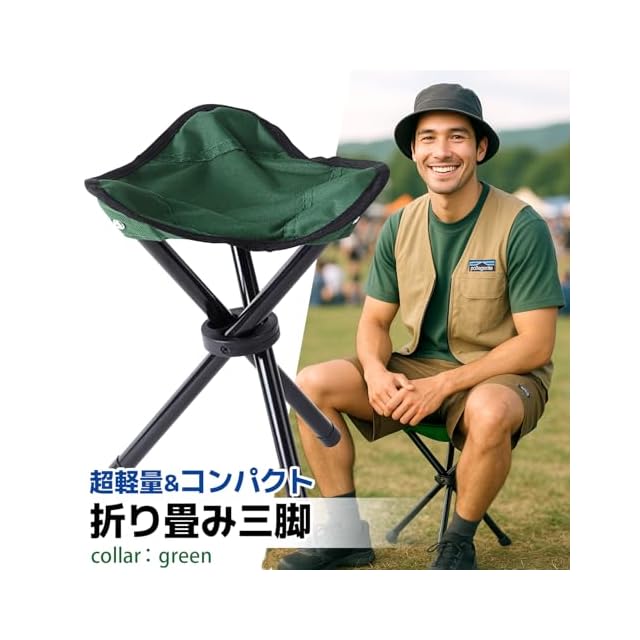 椅子 折りたたみ 三脚 コンパクトチェア グリーン 軽量(約275g) ポータブル アウトドア キャンプ 登山 釣り 運動会