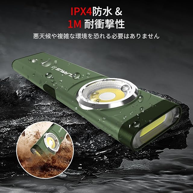 【クリップとマグネットデザイン】弊社のワークライトはマグネットベースのデザインを採用しており、さまざまな金属面にしっかりと取り付けることができます。懐中電灯のクリップはベルト、帽子、テントなどに固定することもでき、懐中電灯の使用を安定させながら、手を自由にできます。